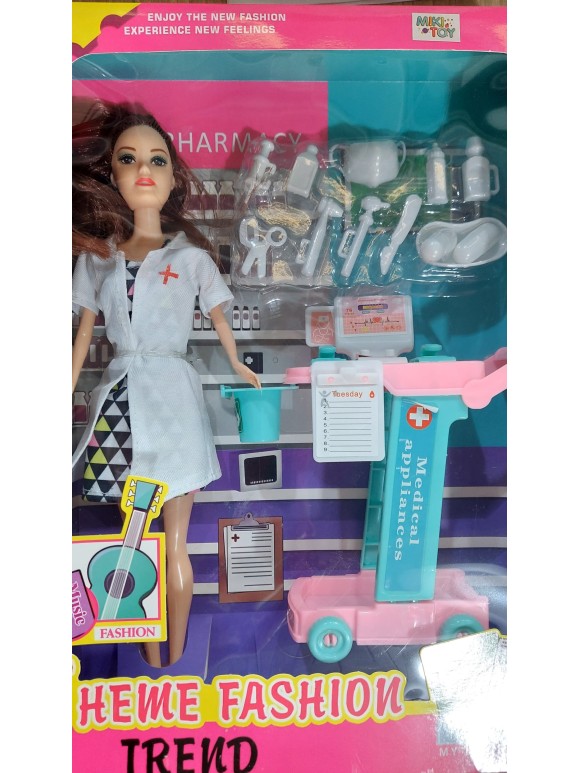 Brinquedo Boneca Medica com Acessorios Incluindo Carrinho Medico com Rodinhas