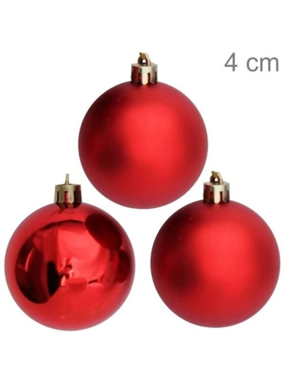 Kit Bola de Natal Vermelha 4cm C/12 Unidades Mista em Tubo para Decoração de Árvores e Enfeites Natalinos