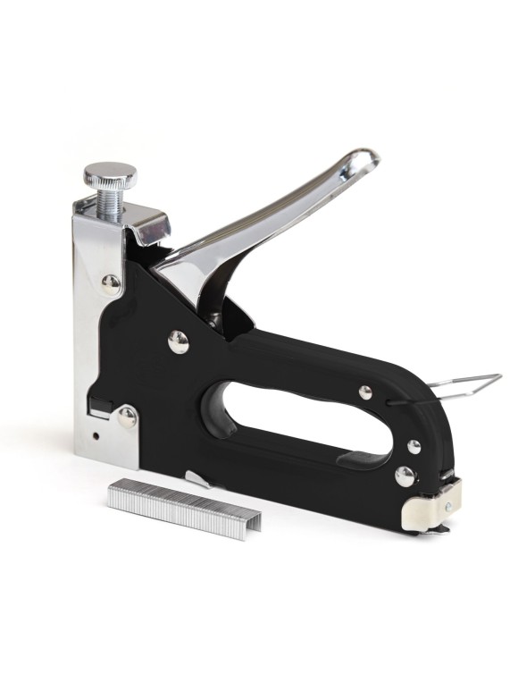 Com estrutura metálica reforçada, ele oferece alta resistência ao uso intenso, garantindo excelente desempenho e longa vida útil. O sistema de ajuste de pressão permite controlar a força de disparo dos grampos, adaptando-se a diferentes materiais e espessuras, tornando-o indispensável em oficinas, escritórios e ambientes de produção artesanal.
