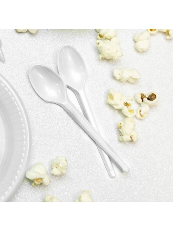 Colher Plástica Sobremesa Branco 25 Unidades Doces Aniversario